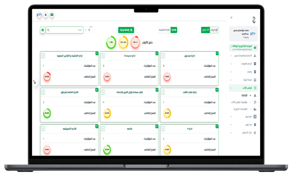 توفر المنصة أدوات مرنة لتحديد وتتبع مؤشرات الأداء (KPIs) بحسب كل إدارة أو مشروع، مما يُساعد في تحسين النتائج ومتابعة التقدم.