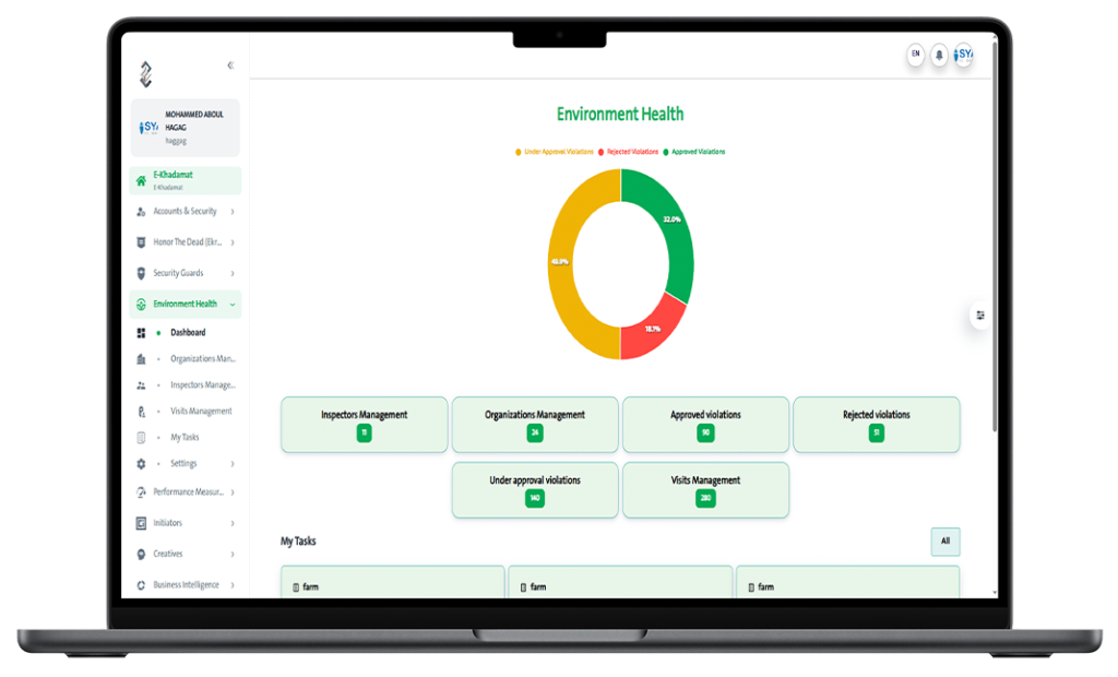 Bey’ati is a smart digital platform designed to manage and monitor the activities of health and environmental inspectors. It streamlines field operations, automates violation documentation, and enhances transparency by displaying inspection outcomes to the public via a dynamic, interactive map.
